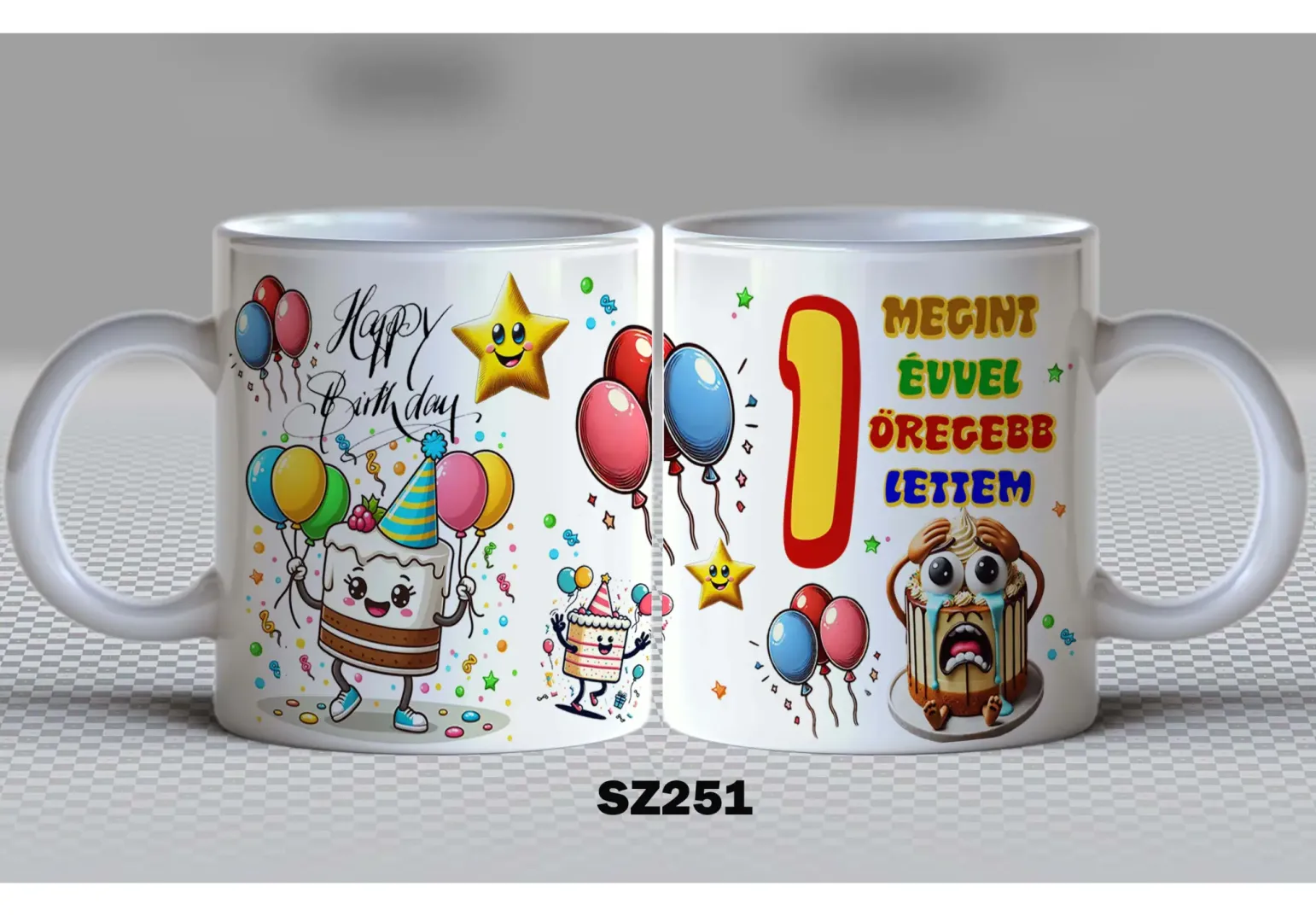 Vidám szülinapos mintával és felirattal díszített kerámia bögre. Tökéletes születésnapi ajándék nőknek.