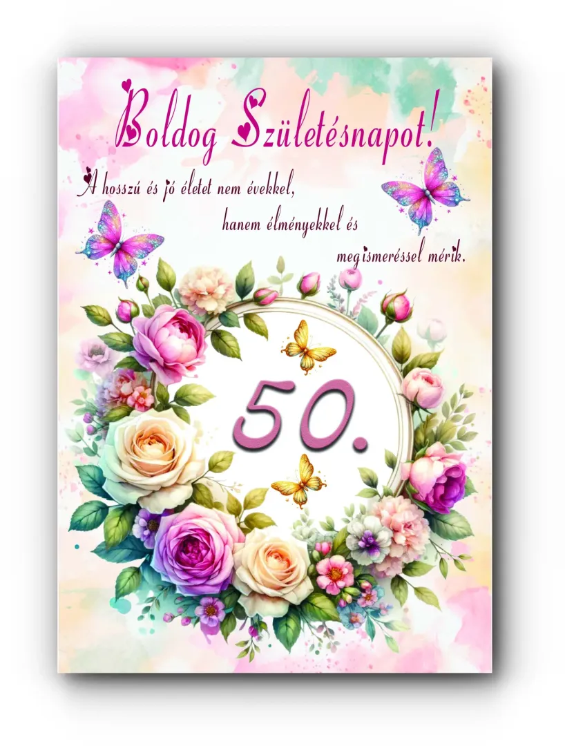 Tedd különlegessé a 50. születésnapot ezzel az A4-es méretű matricázott felületű fatáblával! Tökéletes ajándék születésnapra nőknek. A praktikus zsinórnak köszönhetően könnyedén felakasztható falra, ajtóra vagy polcra.