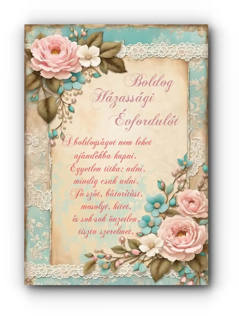 Boldog évfordulót felirattal és szöveggel A4-es dekor fatábla – felakasztható