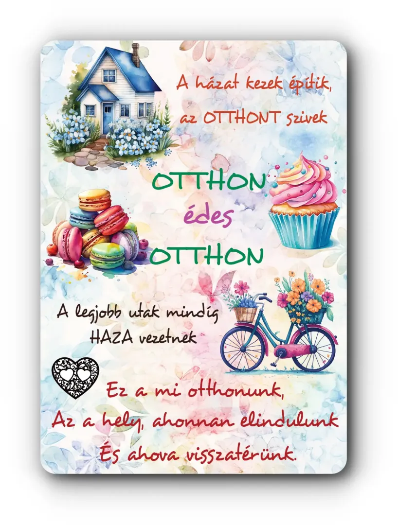 Családról és otthonról szóló szöveggel ellátott hűtőmágnes. Tökéletes apró ajándék bármilyen alkalomra.