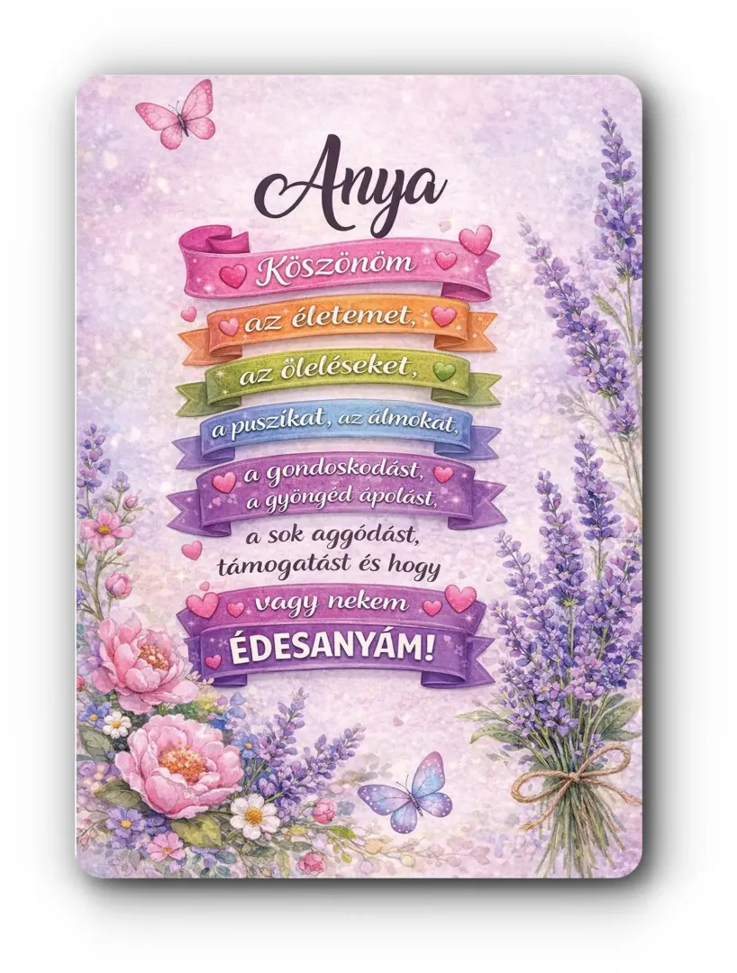 Karton hűtőmágnes - matricázott kivitel. Anya felirattal és szöveggel. Méret 10 x 15 cm Bővebben| Cikkszám | HMK-L70 |