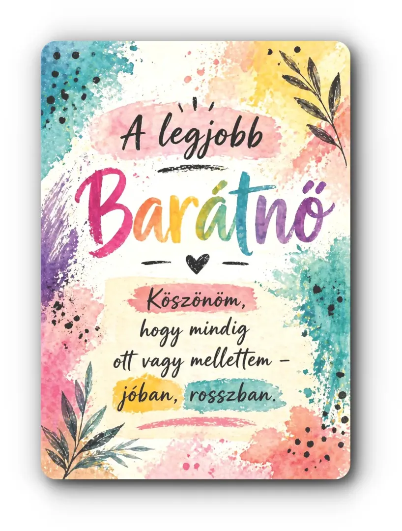 Tartós kartonból készült, matricázott felületű 10×15 cm-es hűtőmágnes. Dekoratív ajándék barátnőnek, praktikus kiegészítő hűtőre, fémfelületre. Legjobb barátnő felirattal.