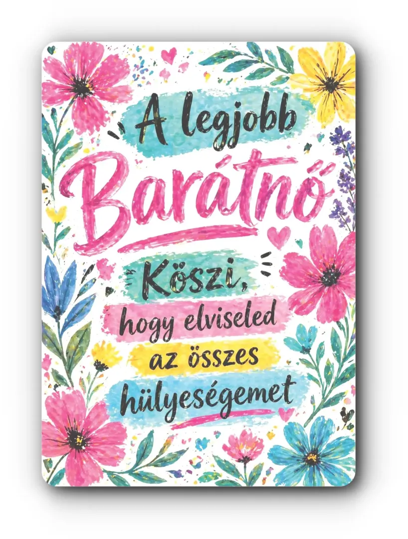 Tartós kartonból készült, matricázott felületű 10×15 cm-es hűtőmágnes. Dekoratív ajándék barátnőnek, praktikus kiegészítő hűtőre, fémfelületre. Legjobb barátnő felirattal.
