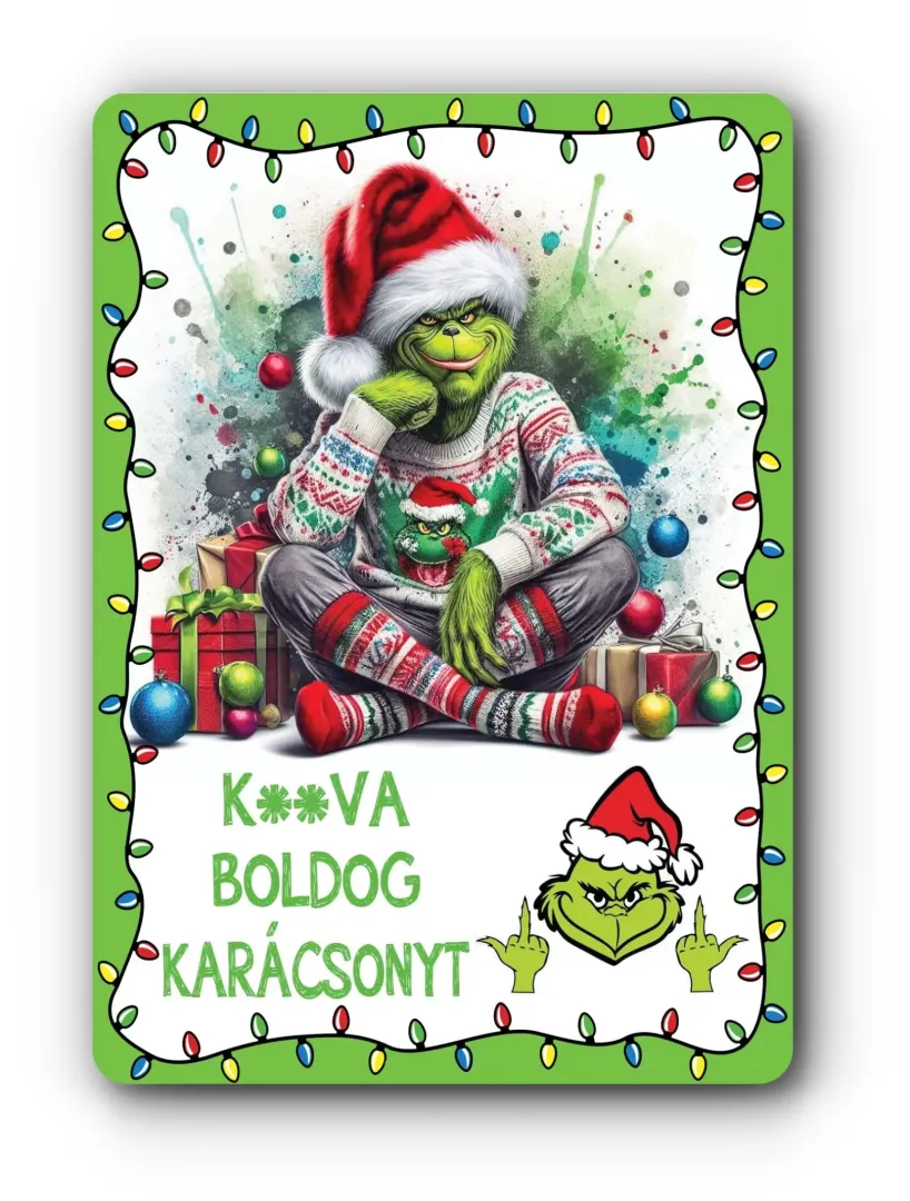 Karácsonyi Grinches hűtőmágnes – vidám, kissé csintalan hangulat az ünnepekre!
