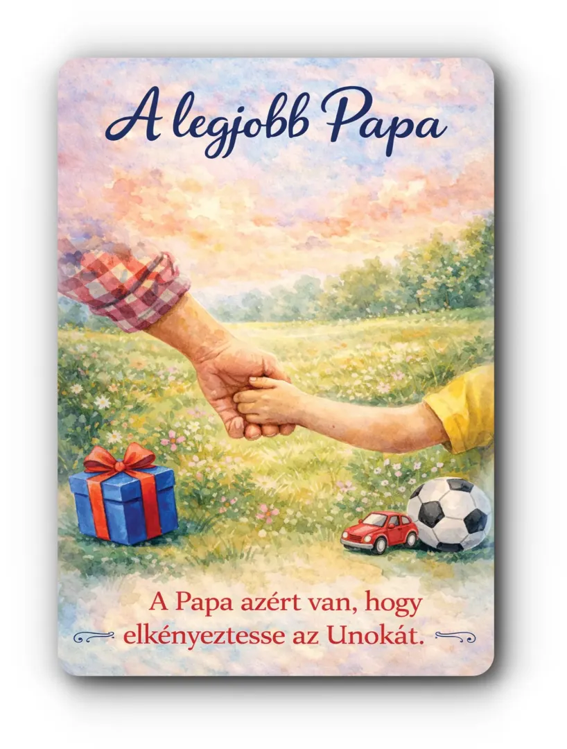 Tartós kartonból készült, matricázott felületű 10×15 cm-es hűtőmágnes. Dekoratív ajándék papáknak, nagypapáknak, praktikus kiegészítő hűtőre, fémfelületre. A legjobb Papa felirattal és szöveggel.