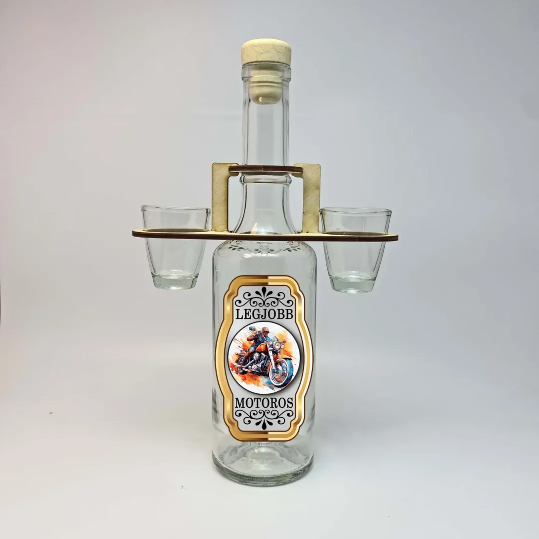 Személyes üzenetes Pálinkás készlet: Legjobb Motoros felírattal. Tökéletes ajándék férfiaknak bármilyen alkalomra.