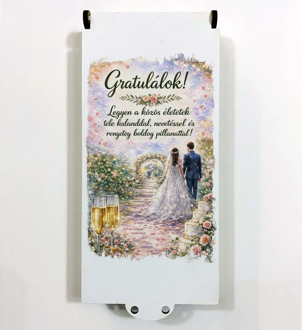 A dobozhoz tartozó színes selyemszalag segítségével könnyedén összeköthető, így esztétikus és elegáns külsőt ad a pénz átadásához.